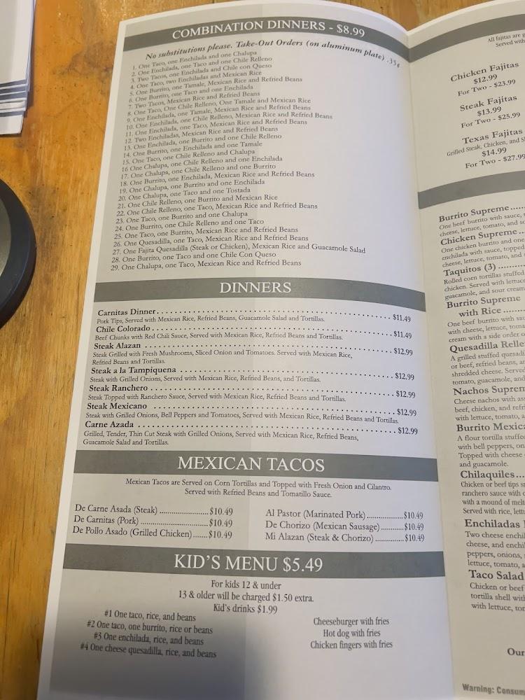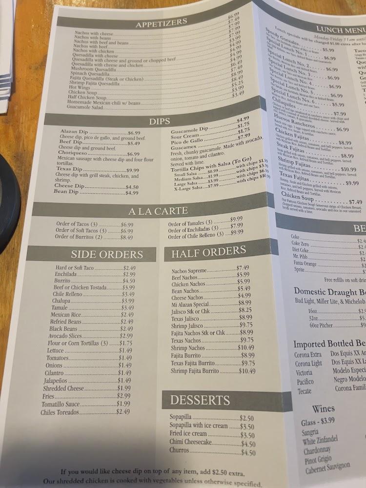 Mi Alazan's menu is a delightful mix of diverse Mexican offerings. Guests can explore hearty appetizers, scrumptious entrees, and refreshing beverages, totaling to over 170 options. Tacos and fajitas are popular choices that showcase traditional flavors.